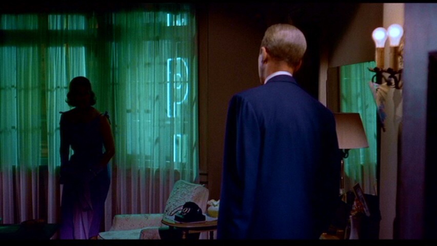 The underwater camera work is fantastic, and is one of the instances of black and white photography almost certainly being the better option, as it allows for sharp contrasts and clearer delineations of objects while in a disorienting position (similar to the earlier moment of vertigo while on the bridge). The perspective shot as we sink to the bottom is exceptional.